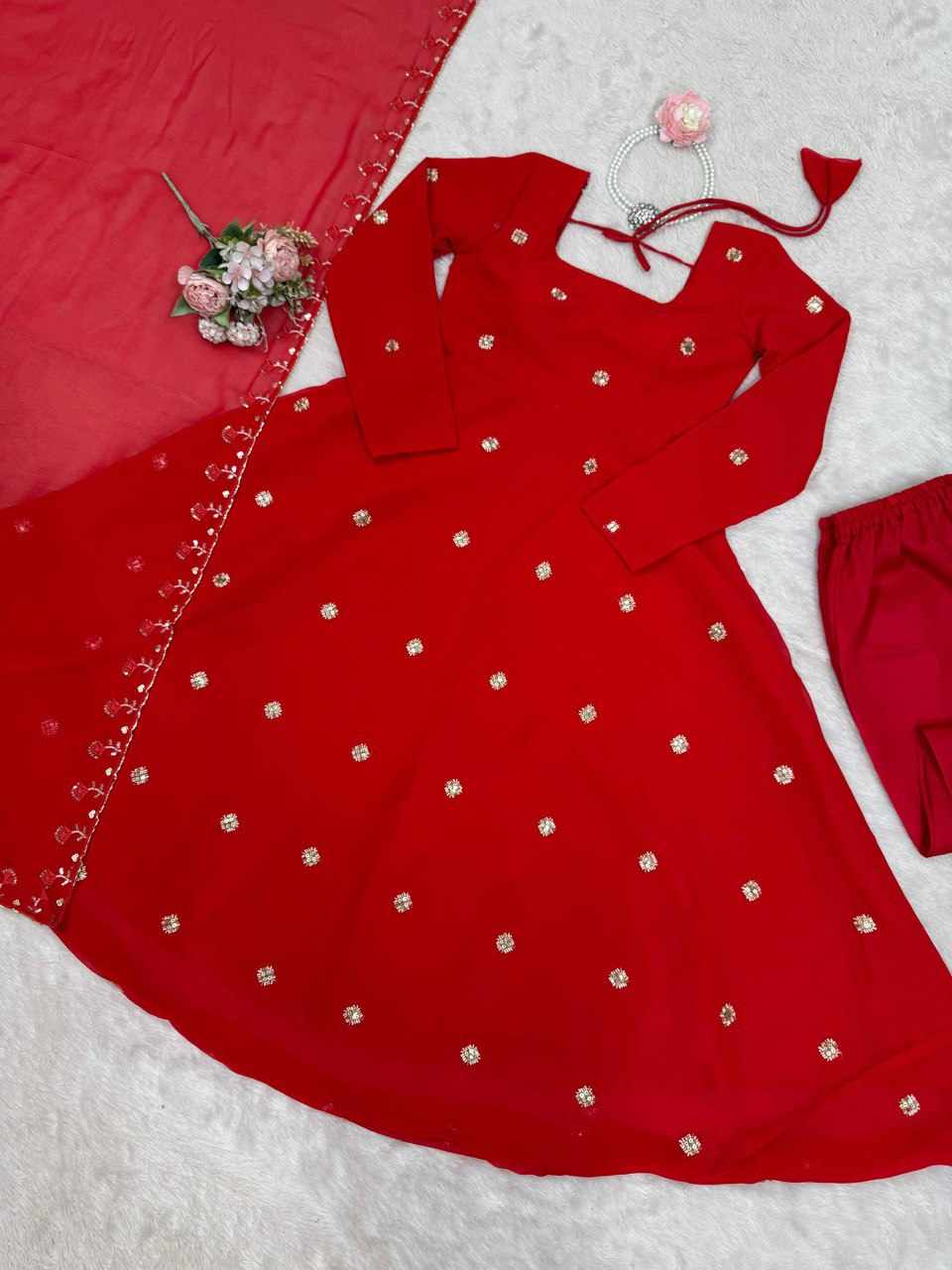 | Name : | RTC 5872 Foux Gorgette Beads with moti handwork Readymade Dress |